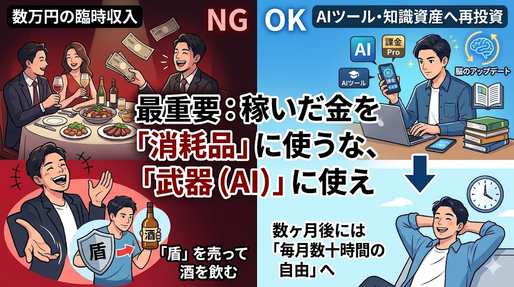 最重要:稼いだ金を「消耗品」に使うな、「武器(AI)」に使え